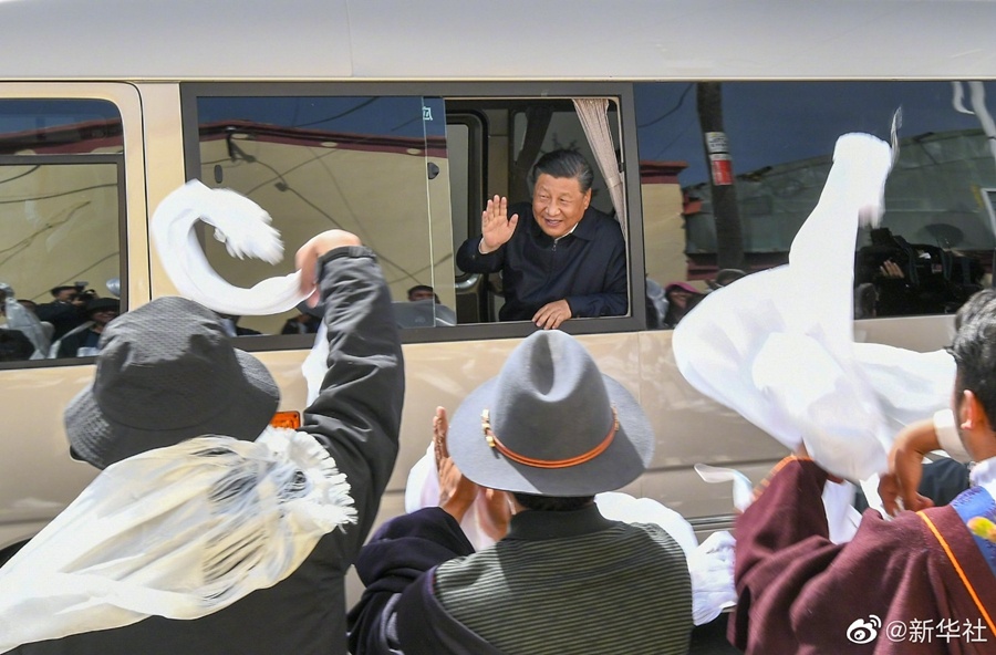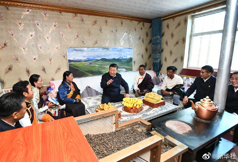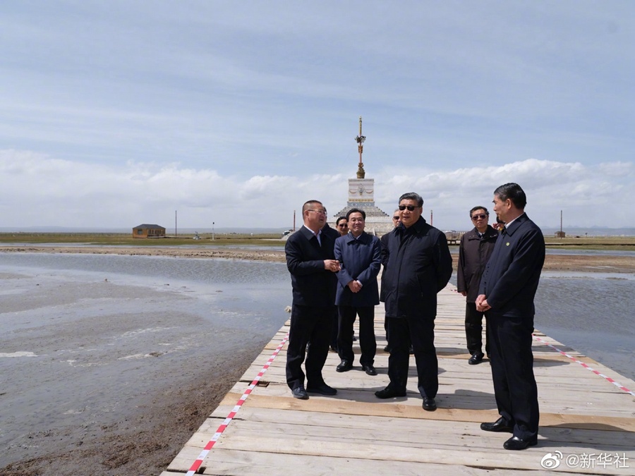 8日下午,习近平总书记来到青海省海北藏族自治州刚察县,在青海湖仙女湾听取祁连山和青海湖生态环境保护等情况介绍,并实地察看青海湖环境综合治理、生物多样性保护工作成效。随后,习近平来到沙柳河镇果洛藏贡麻村,看望慰问藏族群众,走进藏族群众家中了解生产生活情况。(文字记者:张晓松、朱基钗;摄影记者:李学仁、谢环驰、燕雁、申宏)