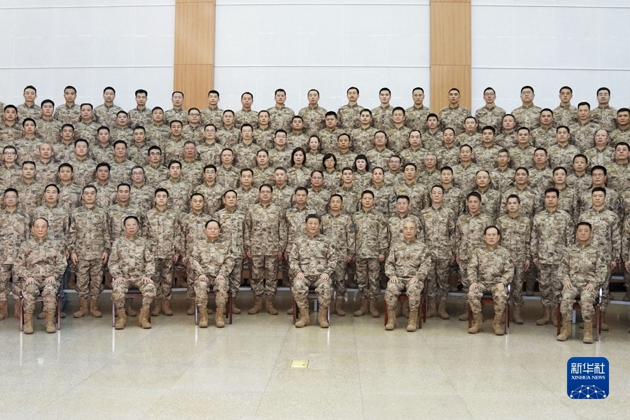 1月28日,中华民族传统节日春节即将来临之际,中共中央总书记、国家主席、中央军委主席习近平到中部战区视察慰问,代表党中央和中央军委,向全体人民解放军指战员、武警部队官兵、军队文职人员、民兵预备役人员致以诚挚问候和新春祝福。这是习近平亲切接见中部战区官兵代表,同大家合影留念。新华社记者 李刚 摄
