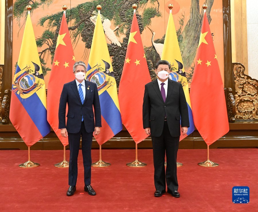 2月5日下午,国家主席习近平在北京人民大会堂会见来华出席北京2022年冬奥会开幕式的厄瓜多尔总统拉索。新华社记者 李响 摄